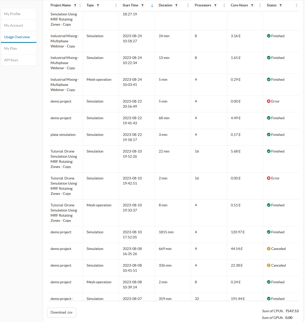 メッシュ作成とシミュレーション実行については、アカウント管理画面よりご確認いただけます。