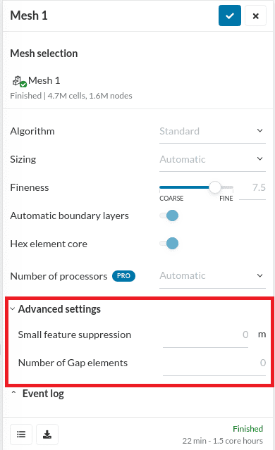 メッシュに問題がないようであれば、 Meshing Log 確認してください。