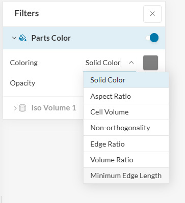 ② Mesh quality では、SimScaleでご利用いただけるポストプロセッサと同じUIで、メッシュに関する詳細な分析を実施していただけます。各種フィルタ機能もご利用いただけます。例:等値ボリューム表示など
